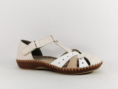 Chaussure de ville ouverte, légère et souple beige blanc, facile à enfiler avec un velcro et une semelle anti-stress RIEKER M1655-61.