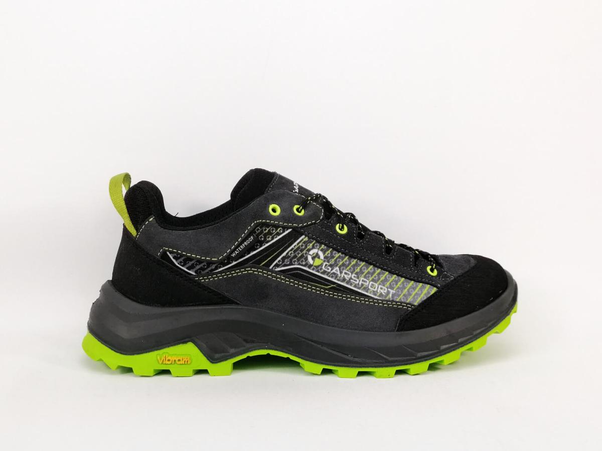Chaussure randonnée homme en cuir et textile imperméable waterproof très résistant et confortable, le destockage de la marque GARSPORT mikeno low noir vert à prix cassé.