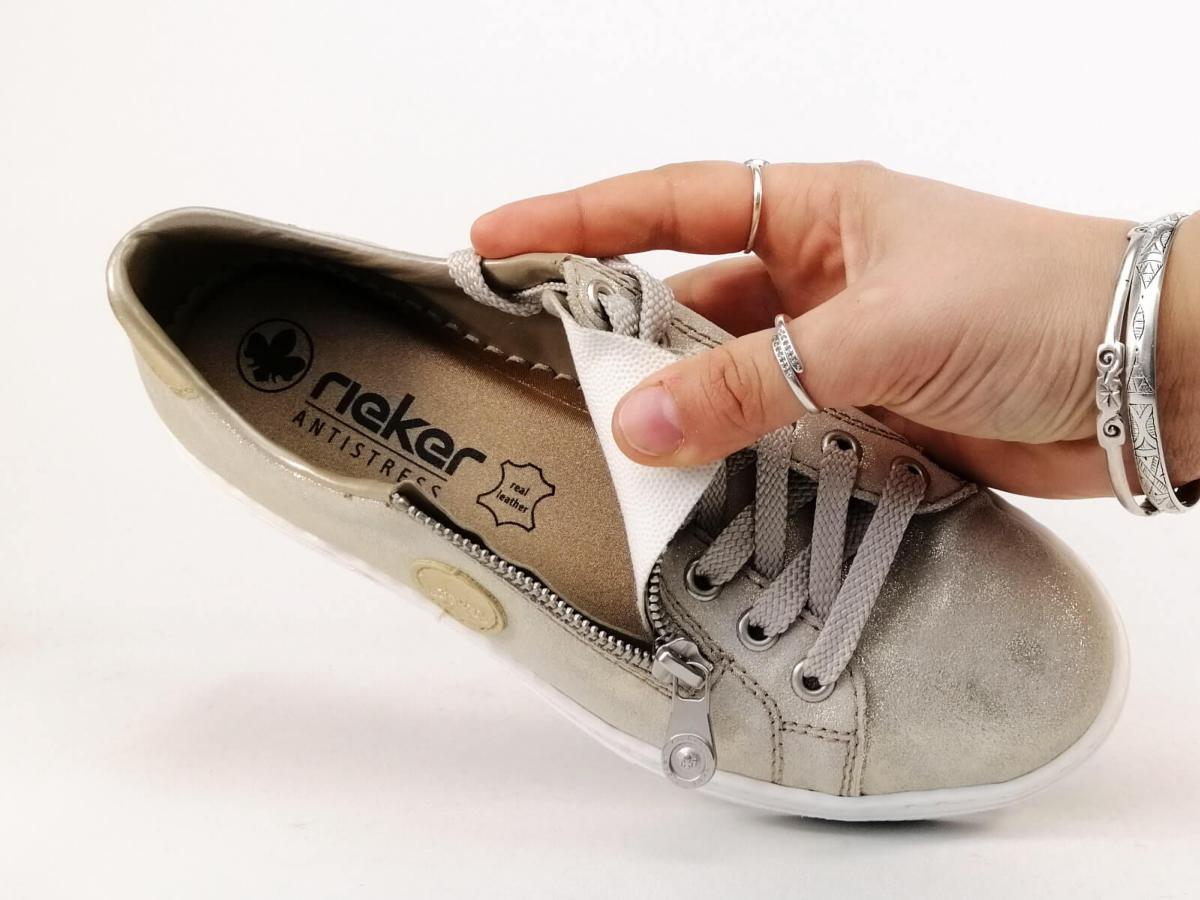 ↓ Plus de détails sur cette basket cuir femme chic et confortable RIEKER L59L8 antistress semelle à mémoire de forme ↓