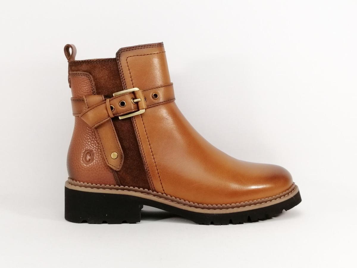 Boots camel femme chic et confortable en cuir souple, légère et tendance en destockage CARMELA 160976 semelle épaisse amortissante.