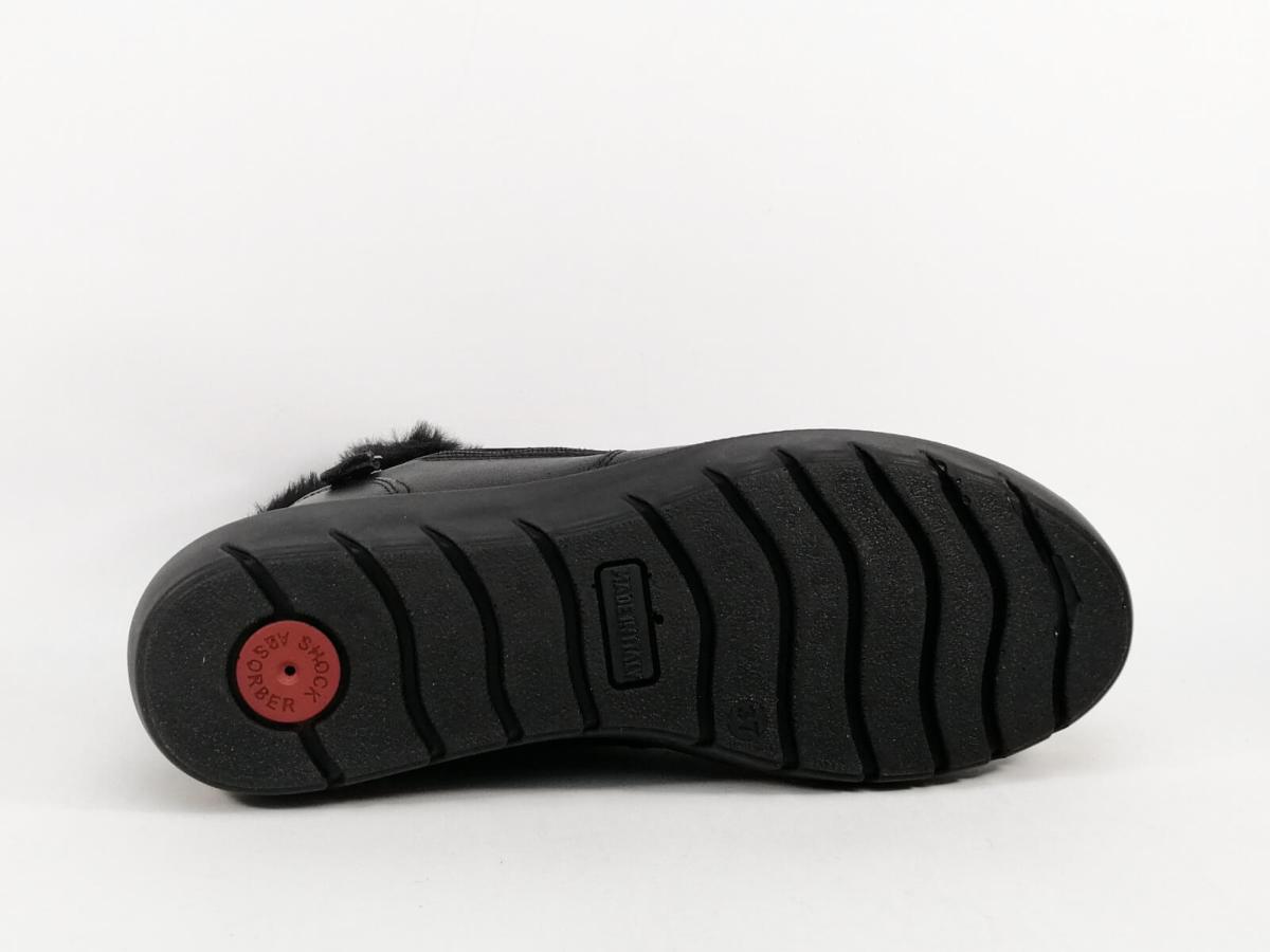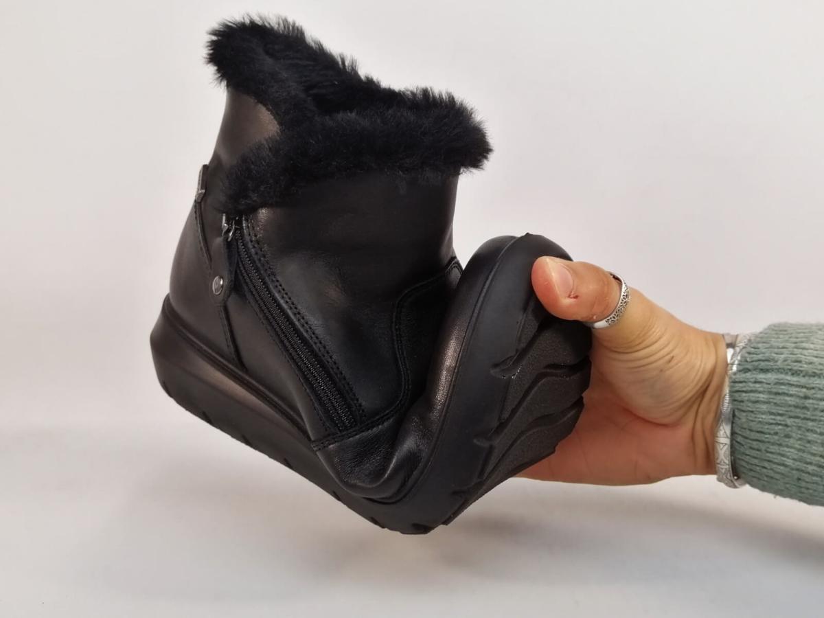 Boots montante femme dessus cuir noir waterproof, doublure intérieure fourré, semelle intérieure amovible en textile.