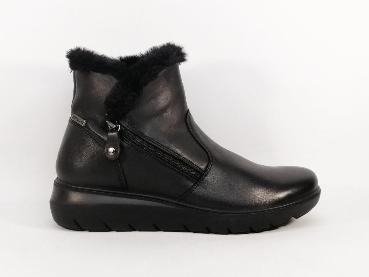 Chaussures fourrées femme grand froid en cuir souple noir imperméable "WaterTex"avec zip et semelle confortable en destockage IMAC 455870 - fabrication en Italie