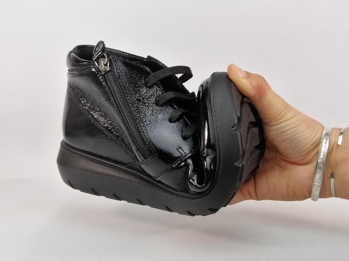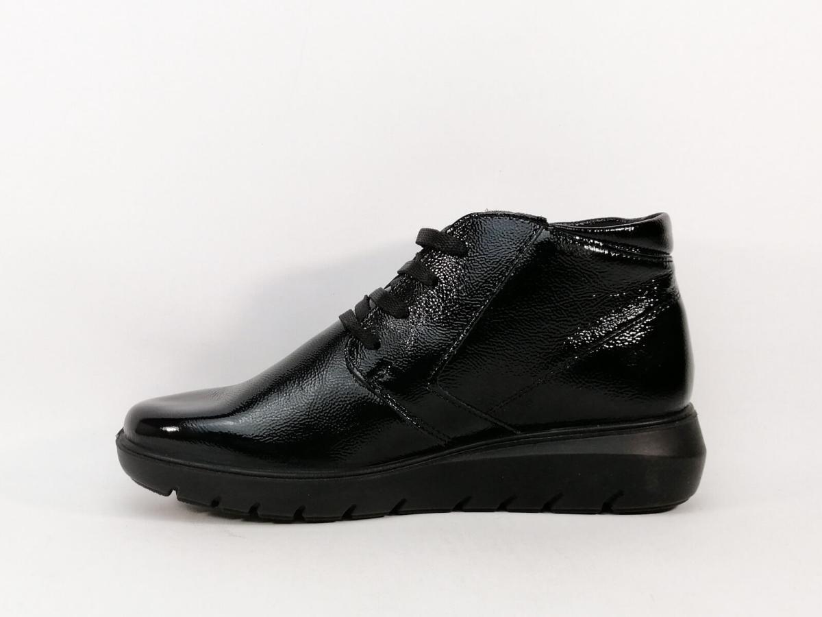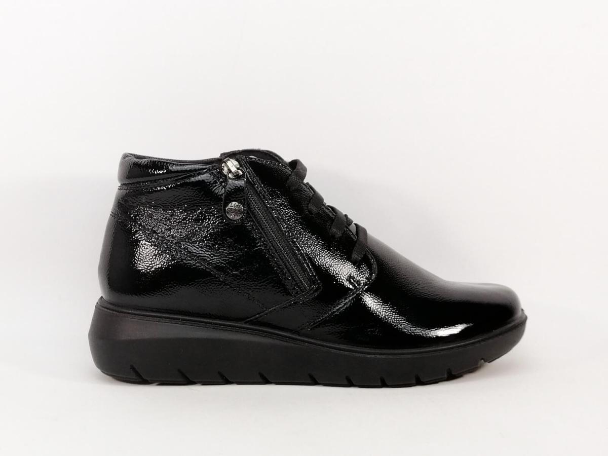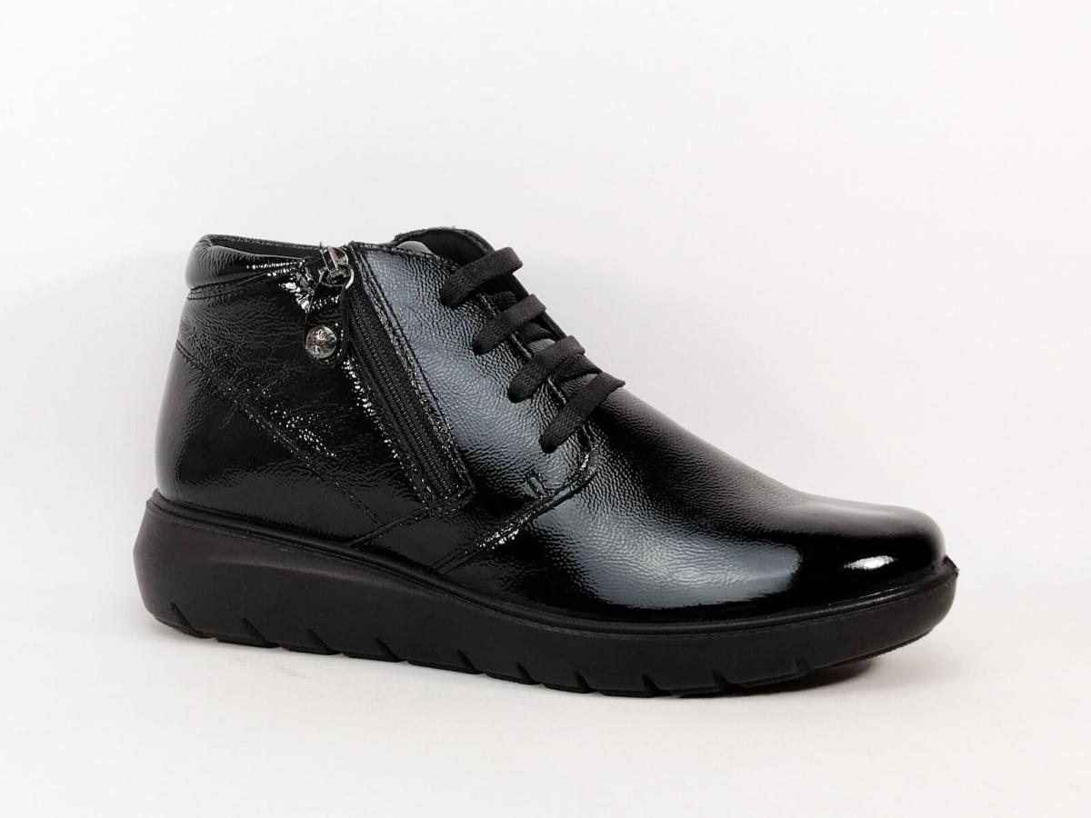 Chaussures montantes femme pieds larges et sensibles en cuir souple noir vernis, grand confort avec zip et lacets à prix cassé en destockage IMAC 455860