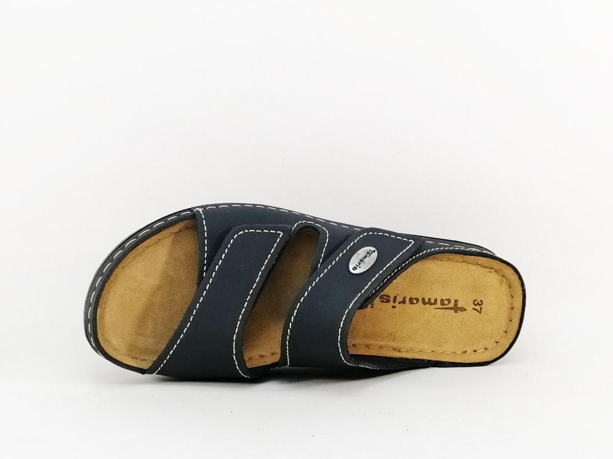 Type de chaussures : Mule femme cuir confort pieds larges et sensibles, Nu pied femme confortable en destockage TAMARIS 27510, Mule femme en cuir souple navy avec double velcro pour pieds larges et sensibles TAMARIS 27510, Sandale femme double scratch confortable, Mule femme cuir souple grand confort, Mule tendance femme très confortable pour pieds larges et pieds sensibles, Mule grand confort femme destockage TAMARIS 27510.
