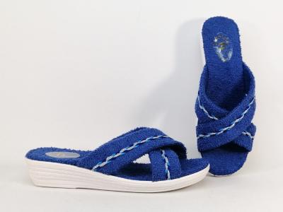 Mule d'été femme souple en éponge bleu 100% coton lavable en machine à 30°C.