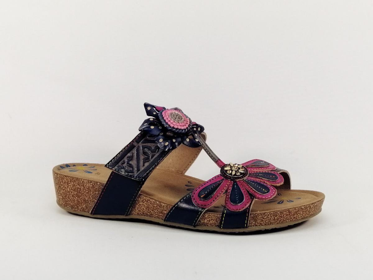↓ Plus de détails sur cette mule fleurie en cuir marine à velcro originale en destockage LISE HILTON 316-11 pour femme ↓