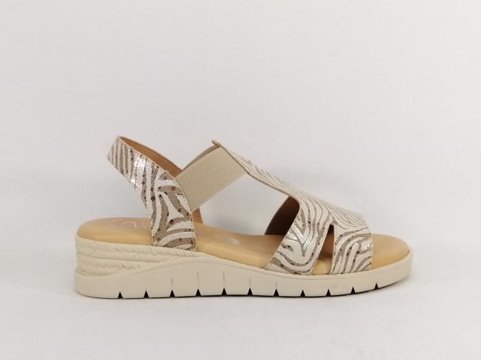 Sandale femme à élastiques, talon compensé, semelle à mémoire de forme ultra confortable, chic cuir or à pas cher VALERIA'S 2032 fabrication Espagne