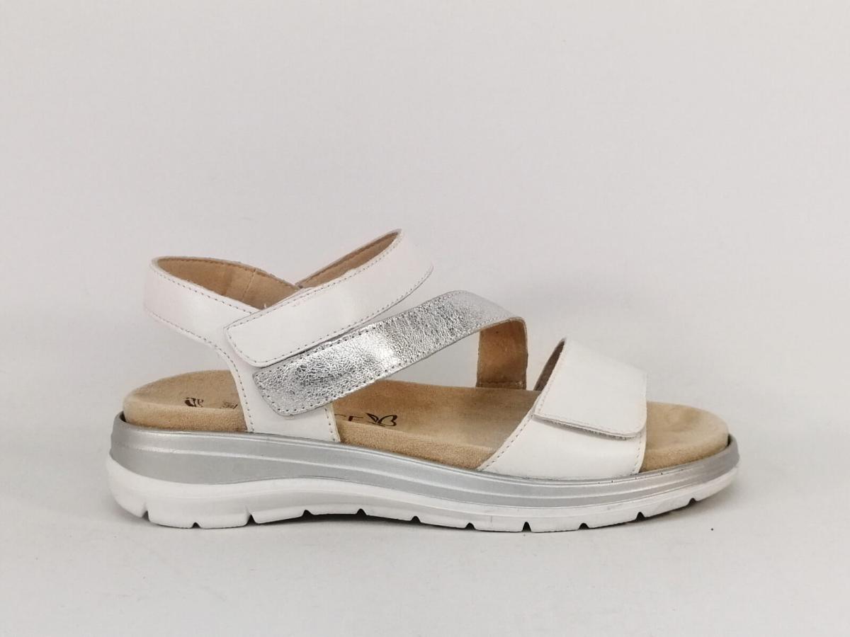 Type de chaussures : Sandale femme semelle amovible grand confort, Sandale femme CAPRICE 28716 largeur G confortables et chic en cuir blanc argent, Sandale femme tendance à velcro réglables, Sandale femme pieds larges avec semelle amovible, Nu pied femme chic et confortable cuir blanc argent souple CAPRICE 28716 largeur G, Sandale femme pieds larges à scratch semelle amovible confortable.