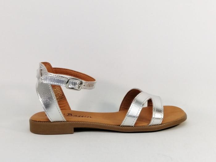 Sandale plate femme chic et confortable cuir argent CAP BASSIN 24097 fabrication Portugal
