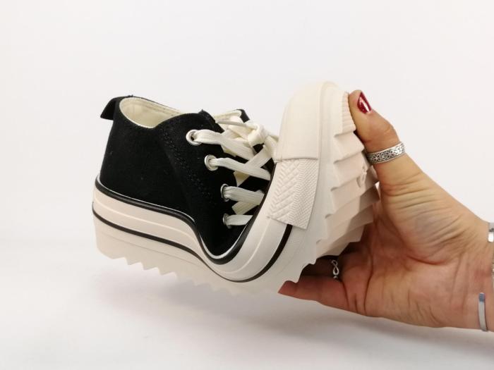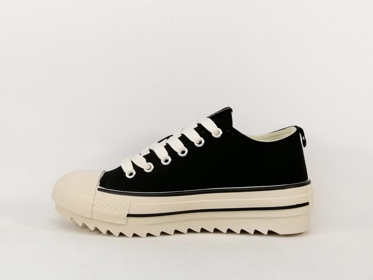 Basket femme toile noire vegane à lacets avec semelle anti-dérapante épaisse et confortable.